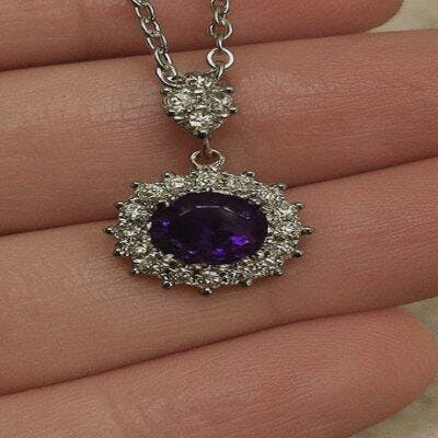 💜 Amethyst glow: Rich violet stone surrounded by a halo of brilliant zircon.